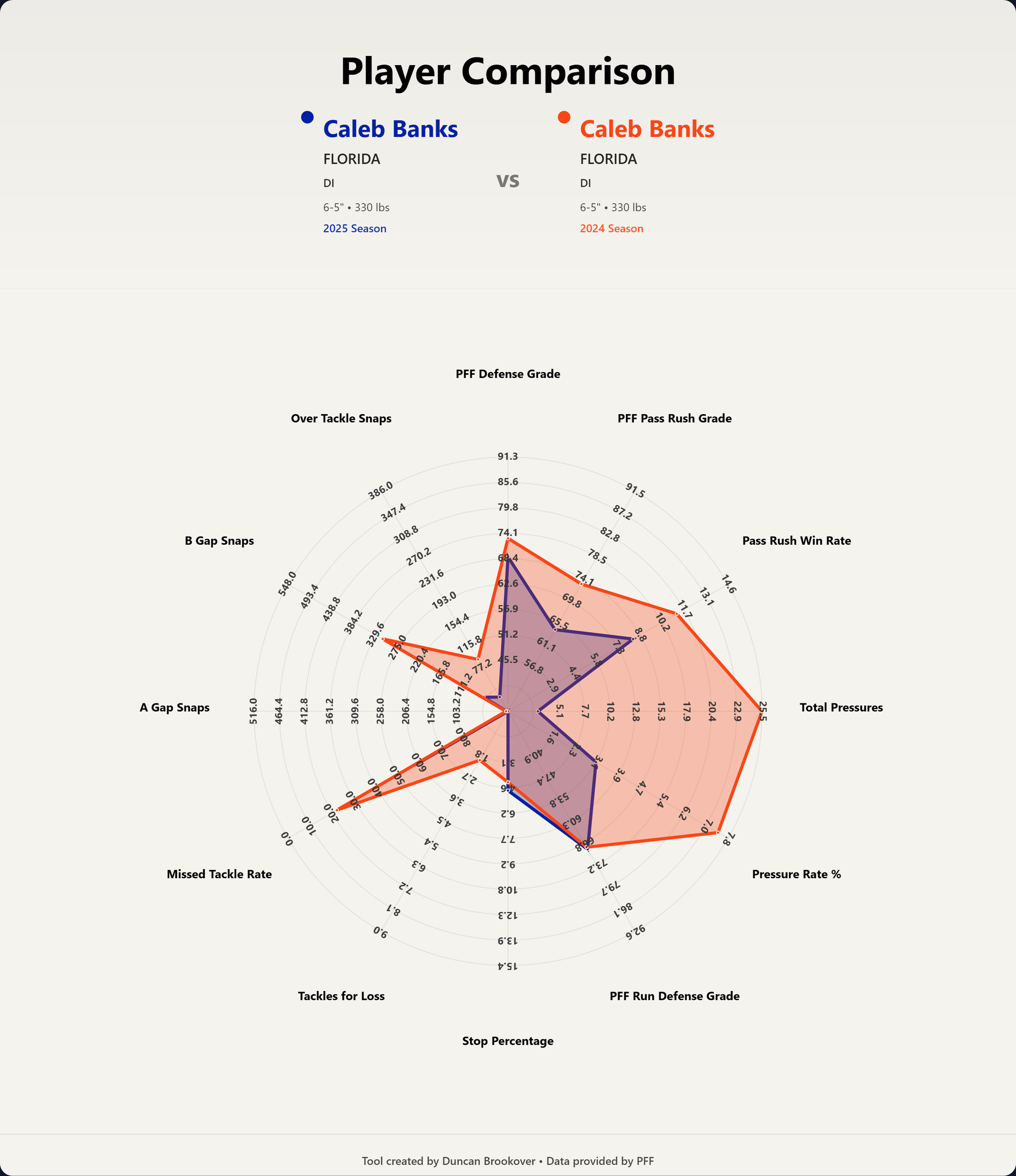 No way around it, that is not a good radar chart. Banks had obvious limitations this year because of his foot injuries, but here's a comparison to the previous year: