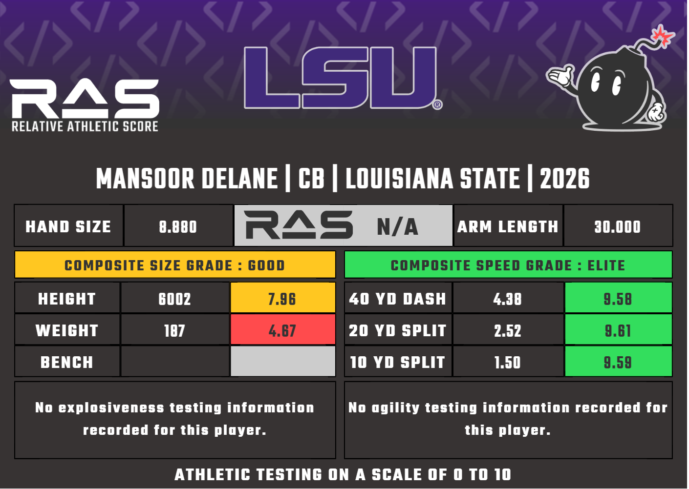 Mansoor Delane was born on December 15, 2003, in Silver Spring, Maryland, and attended Archbishop Spalding High School in Severn, where he was a two-sport athlete in football and wrestling. He is the older brother of four-star safety Faheem Delane, who signed with Ohio State. He transferred to Archbishop Spalding as a sophomore seeking real competition, and an early benching that first year shaped his approach to preparation. A three-star recruit ranked the 13th player in Maryland and the 55th cornerback nationally, he committed to Virginia Tech. In 2022, he achieved FWAA Freshman All-American and 247Sports Freshman All-America status, recording 38 tackles, 8 pass deflections, an interception, and 2 forced fumbles over 8 games. He started all 13 contests as a sophomore and earned Third-Team All-ACC as a junior in 2024, but the Virginia Tech defense had a forgettable season. After entering the transfer portal and committing to LSU, he caught national attention in 11 games. With 45 tackles, a career-high 11 pass deflections, and 2 interceptions, he also limited opponents to a catch on just 40 percent of targets and allowed no touchdowns. He finished his career with a 47.5 percent catch rate allowed and zero pass interference penalties in 2025. He declared for the 2026 NFL Draft.