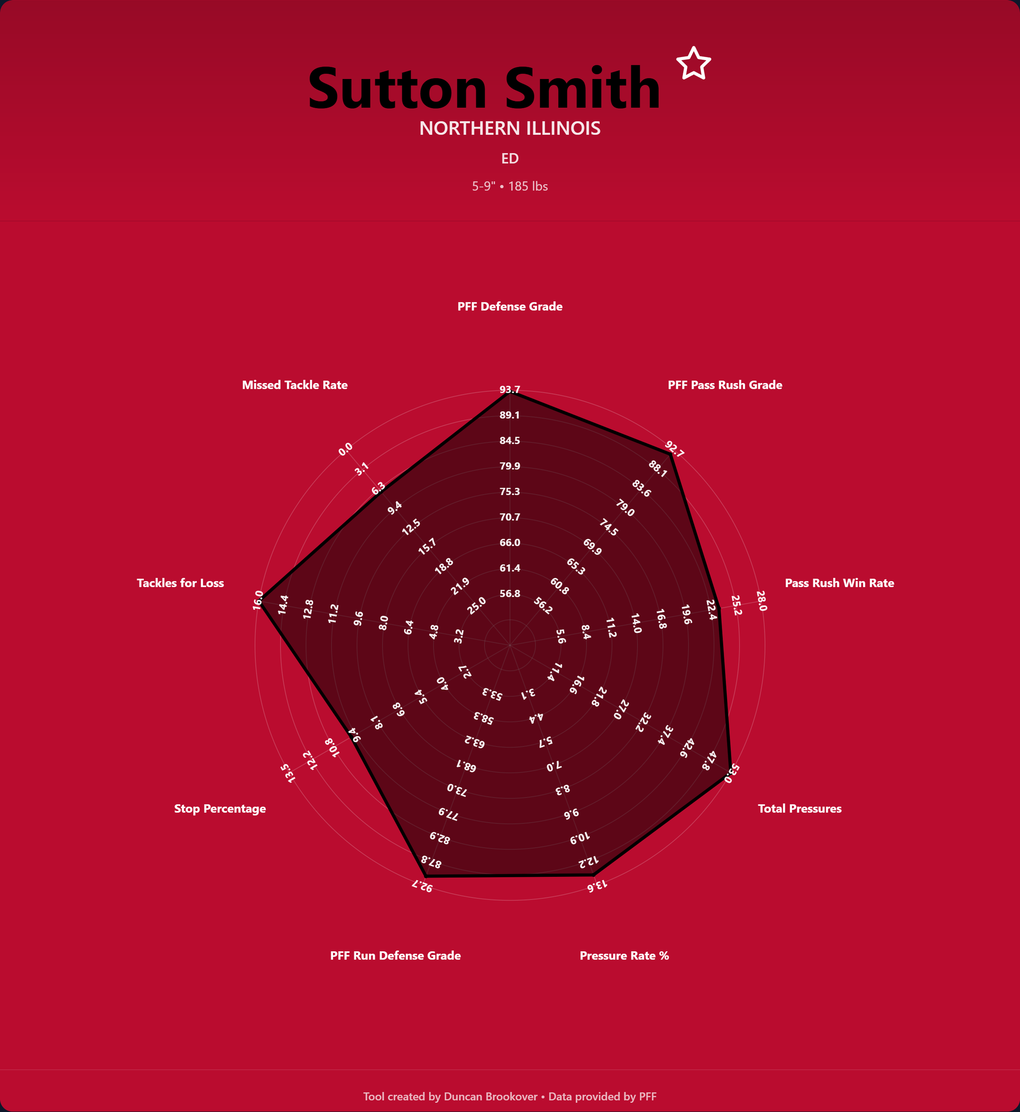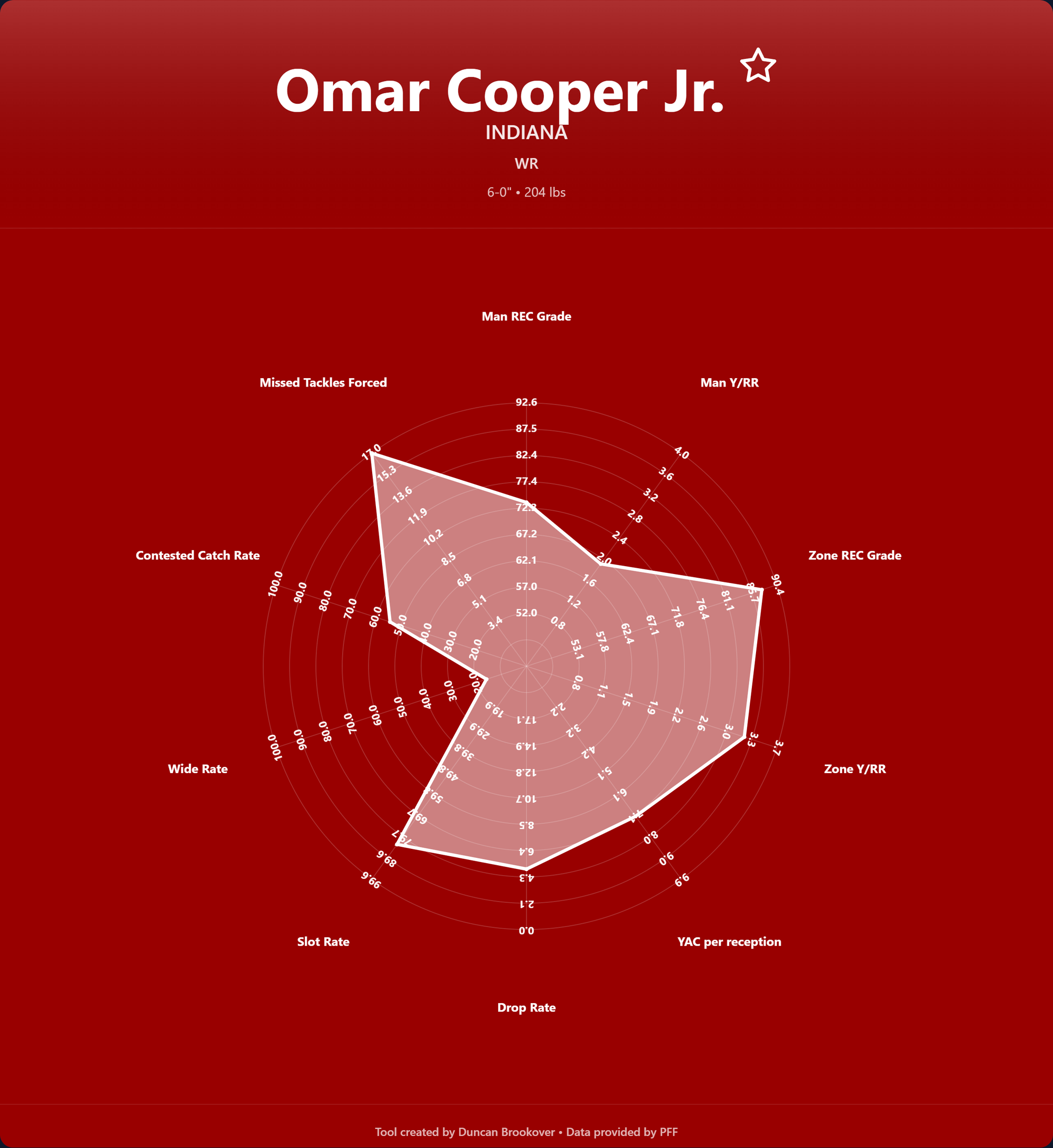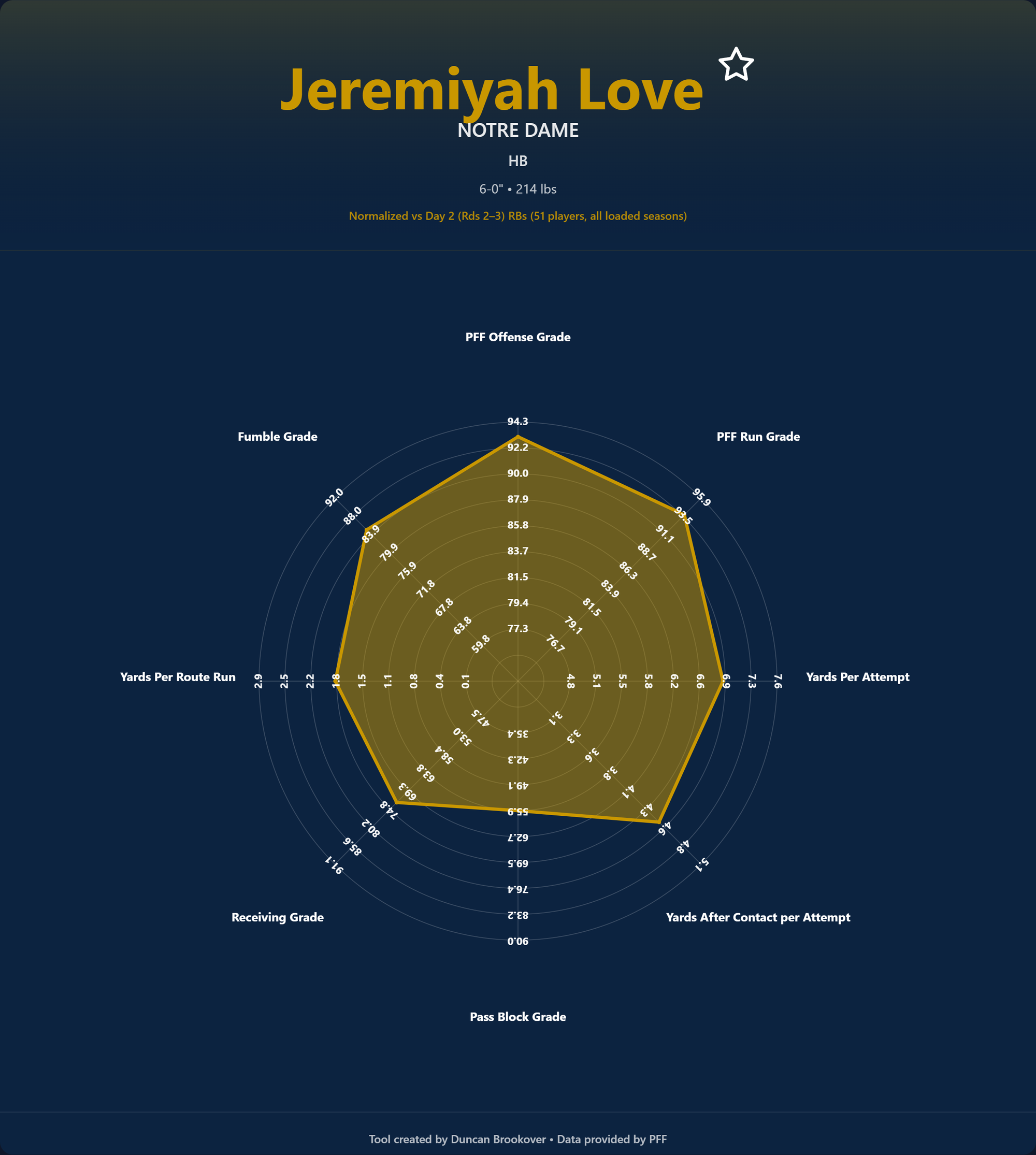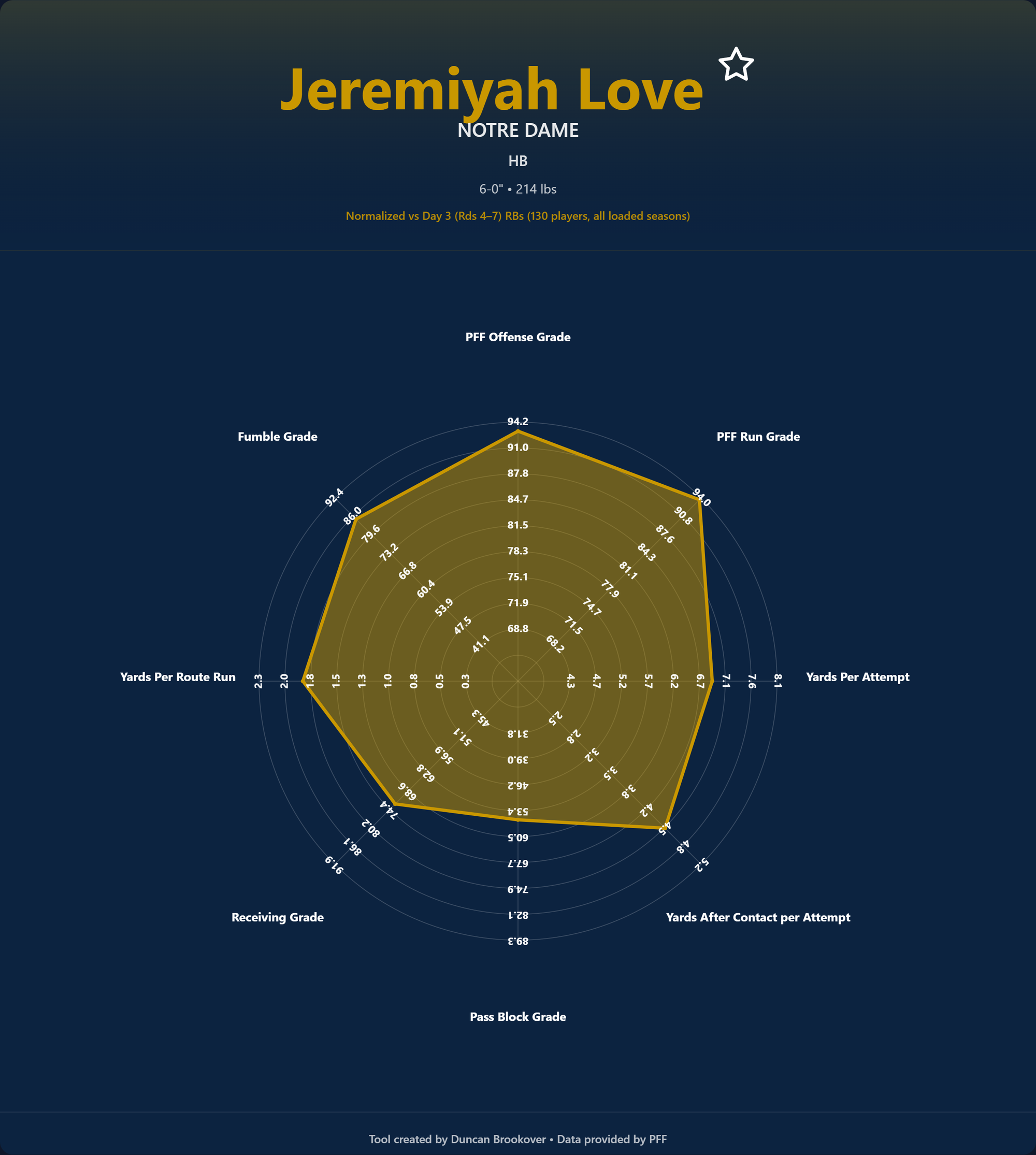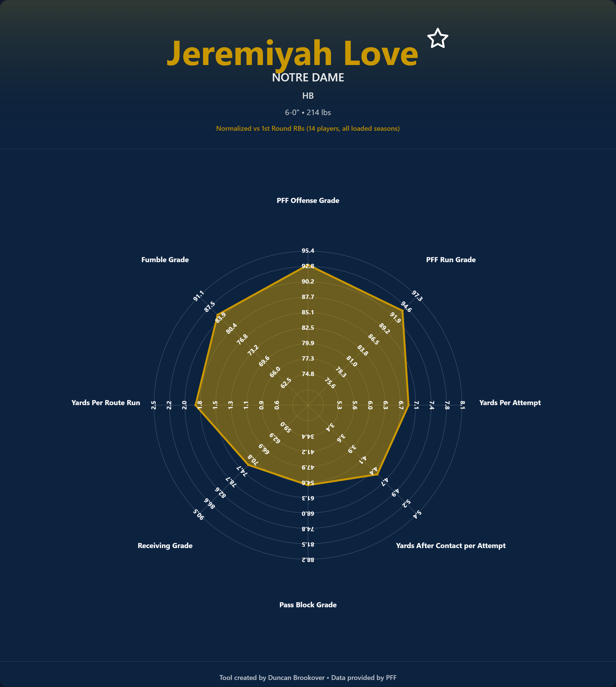 Some positions had upper or lower bound stats that skewed the radar's overall picture due to outliers affecting values. Below you can see an example of the old way and the new.