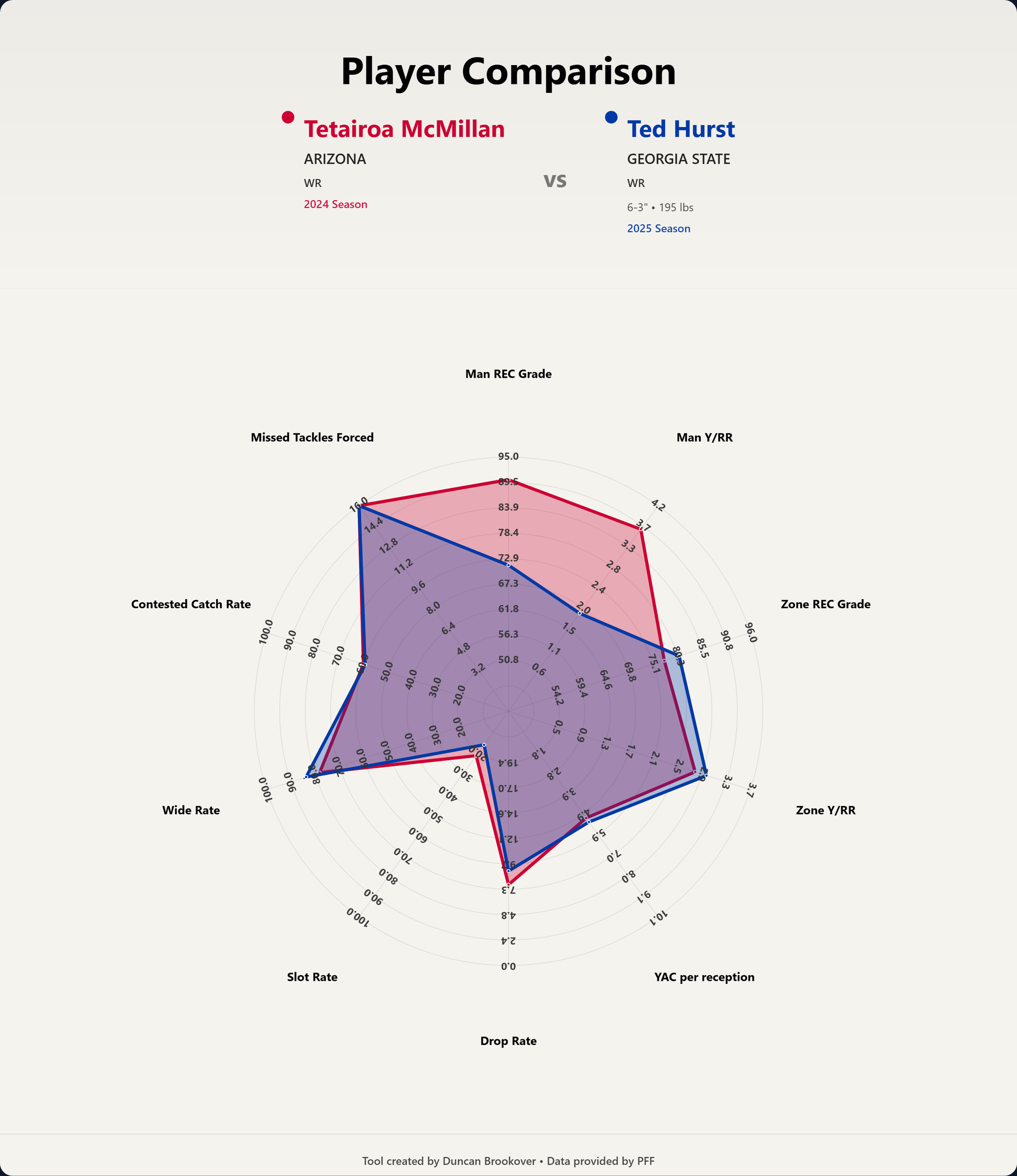 Ted Hurst is a dynamic WR. I need to emphasize the physical section, because that is really what sells Hurst, because that radar chart does not lie otherwise.